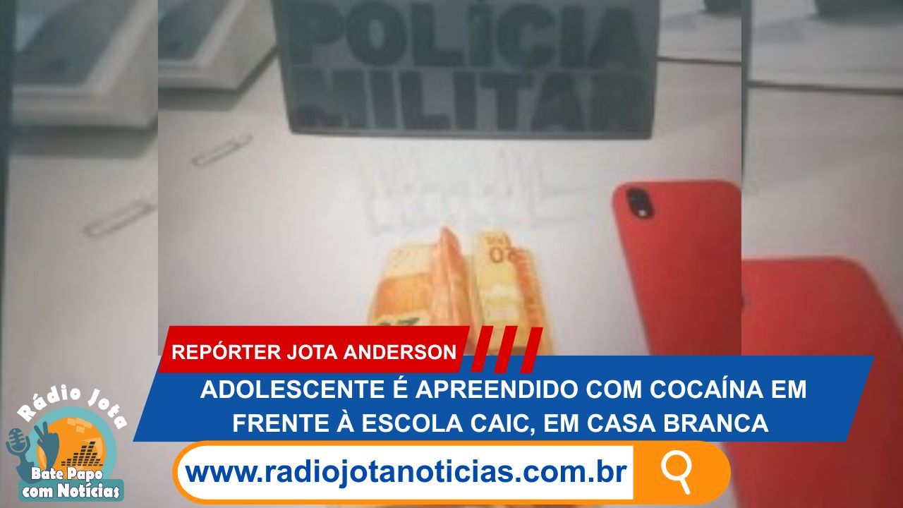 Um adolescente de 13 anos foi apreendido pela Polícia Militar na noite desta terça-feira (14) por ato infracional análogo ao tráfico de drogas, em frente à Escola CAIC, em Casa Branca (SP). A ocorrência foi registrada às 19h14.