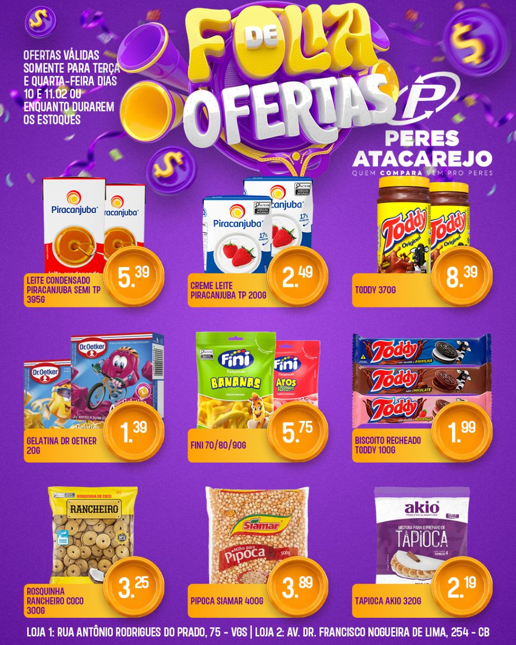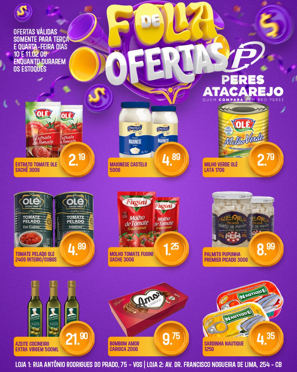 Aproveite nossas ofertas válidas somente nesta terça e quarta, dias 10 e 11/02.