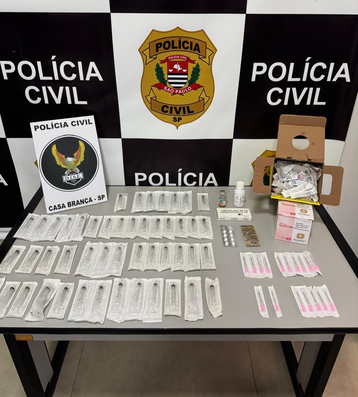 O suspeito recebeu voz de prisão por infringir o artigo 273 do Código Penal, que trata sobre crimes relacionados à adulteração ou uso indevido de produtos terapêuticos e medicinais. Após a detenção, ele foi conduzido à base da DISE em Casa Branca, onde permanece à disposição da Justiça, aguardando audiência de custódia.