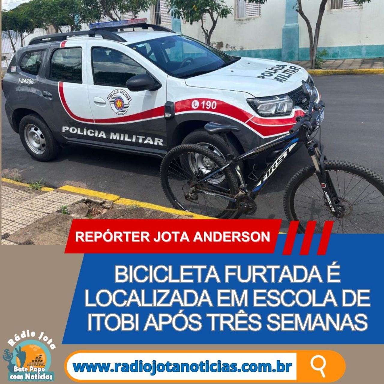 Uma bicicleta furtada há cerca de três semanas foi localizada na tarde desta terça-feira (4) na Escola Nossa Senhora Aparecida, em Itobi (SP). O objeto foi reconhecido pela mãe da vítima, que avistou a bicicleta no pátio da escola.