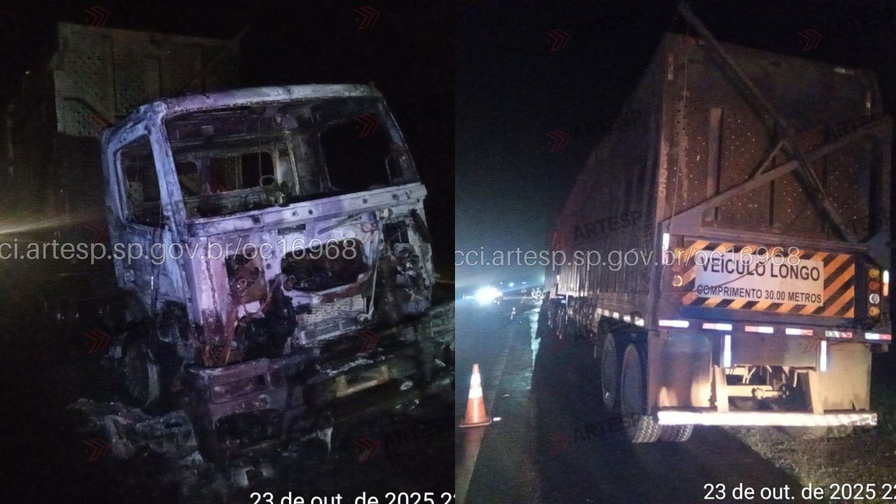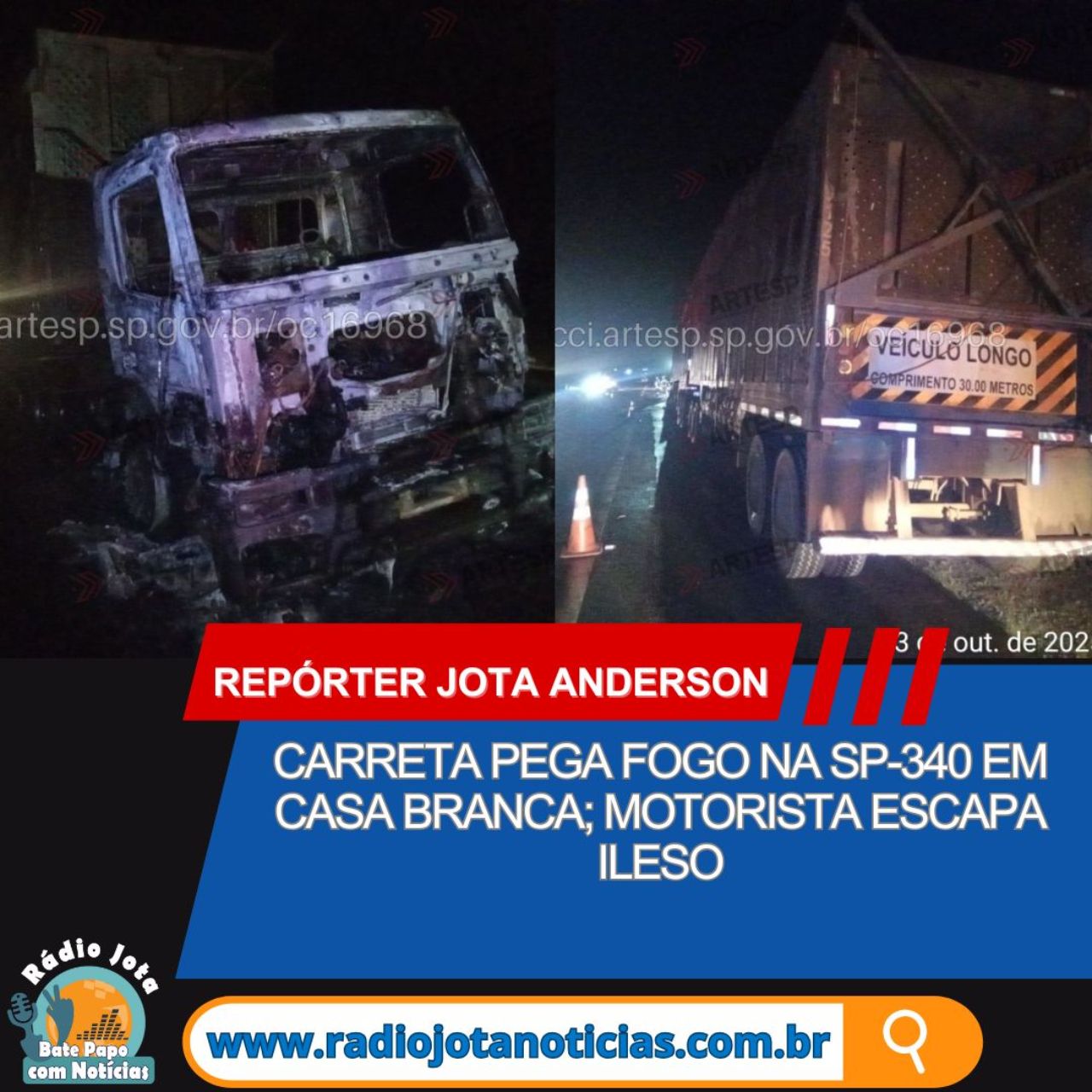 Na noite desta quinta-feira (23), uma carreta modelo Axor trafegava pela SP-340, em Casa Branca, quando apresentou uma pane elétrica no km citado, obrigando o condutor a parar no acostamento. Pouco depois, o veículo começou a pegar fogo, e, sem possibilidade de controle, o cavalo mecânico foi completamente destruído pelas chamas.