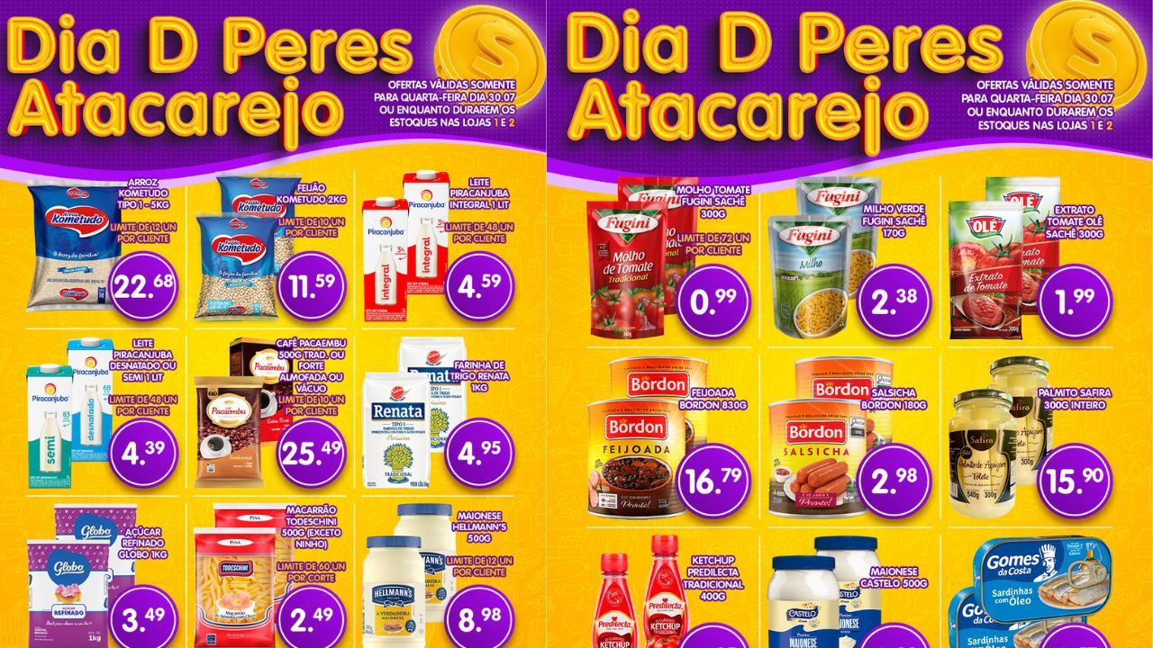 Venha aproveitar preços arrasadores e encher o carrinho gastando menos! Tudo o que você precisa para economizar DE VERDADE está no DIA D do Peres Atacarejo!