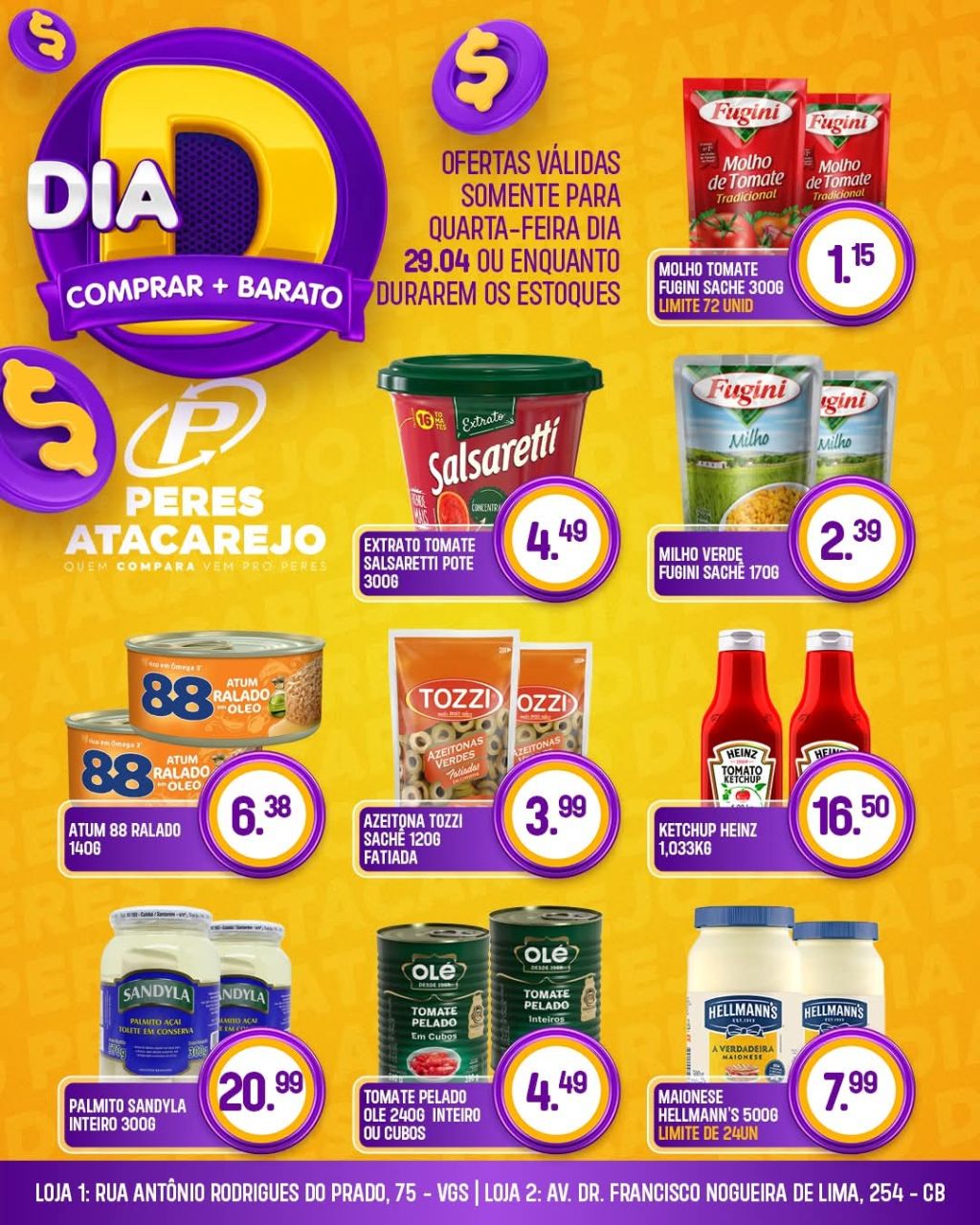 Ofertas válidas somente para quarta-feira dia 29.04.2026 nas lojas 1 e 2!Excepcionalmente no dia 29.04 não iremos atender a pedidos pelo telefone nem WhatsApp!!! As entregas seguem normalmente!
