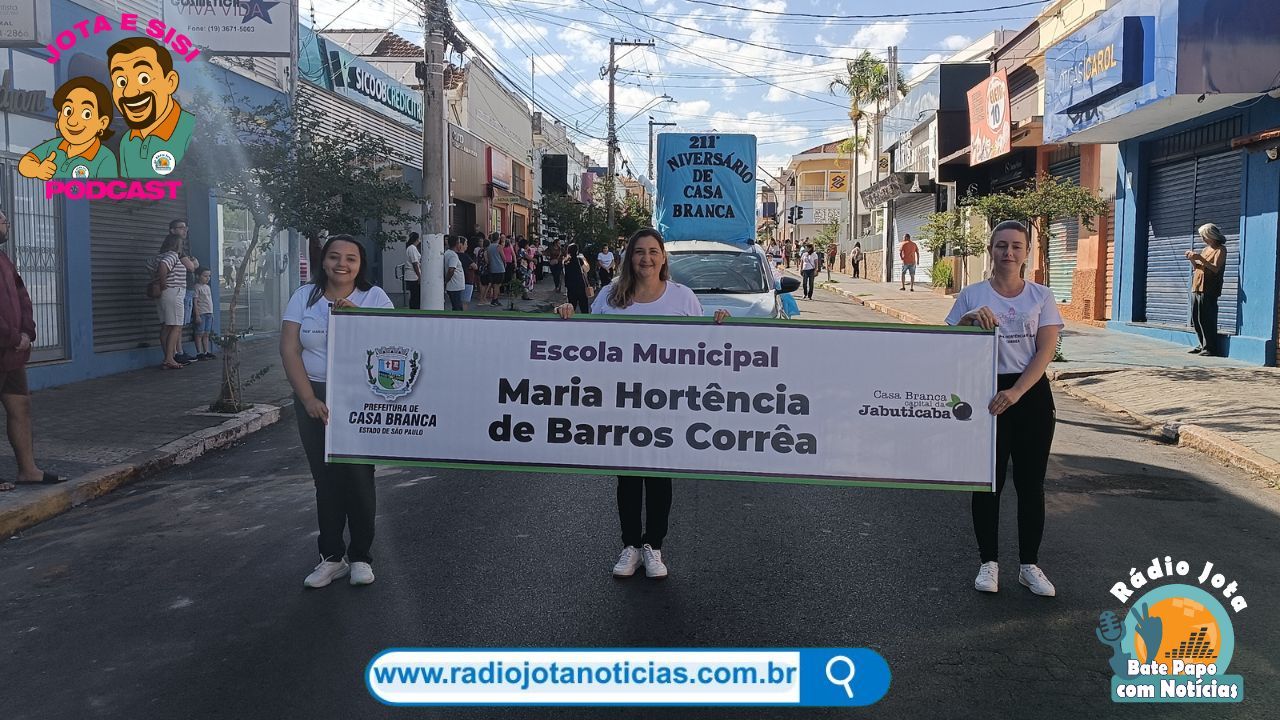 No último sábado, dia 25, Casa Branca celebrou seus 211 anos de história, cultura e tradição com um grandioso Desfile Cívico que reuniu escolas, entidades e autoridades locais. A comemoração contou mais uma vez com a participação da Rádio Jota Notícias e da Gazeta de Casa Branca, registrando cada momento dessa importante data.
