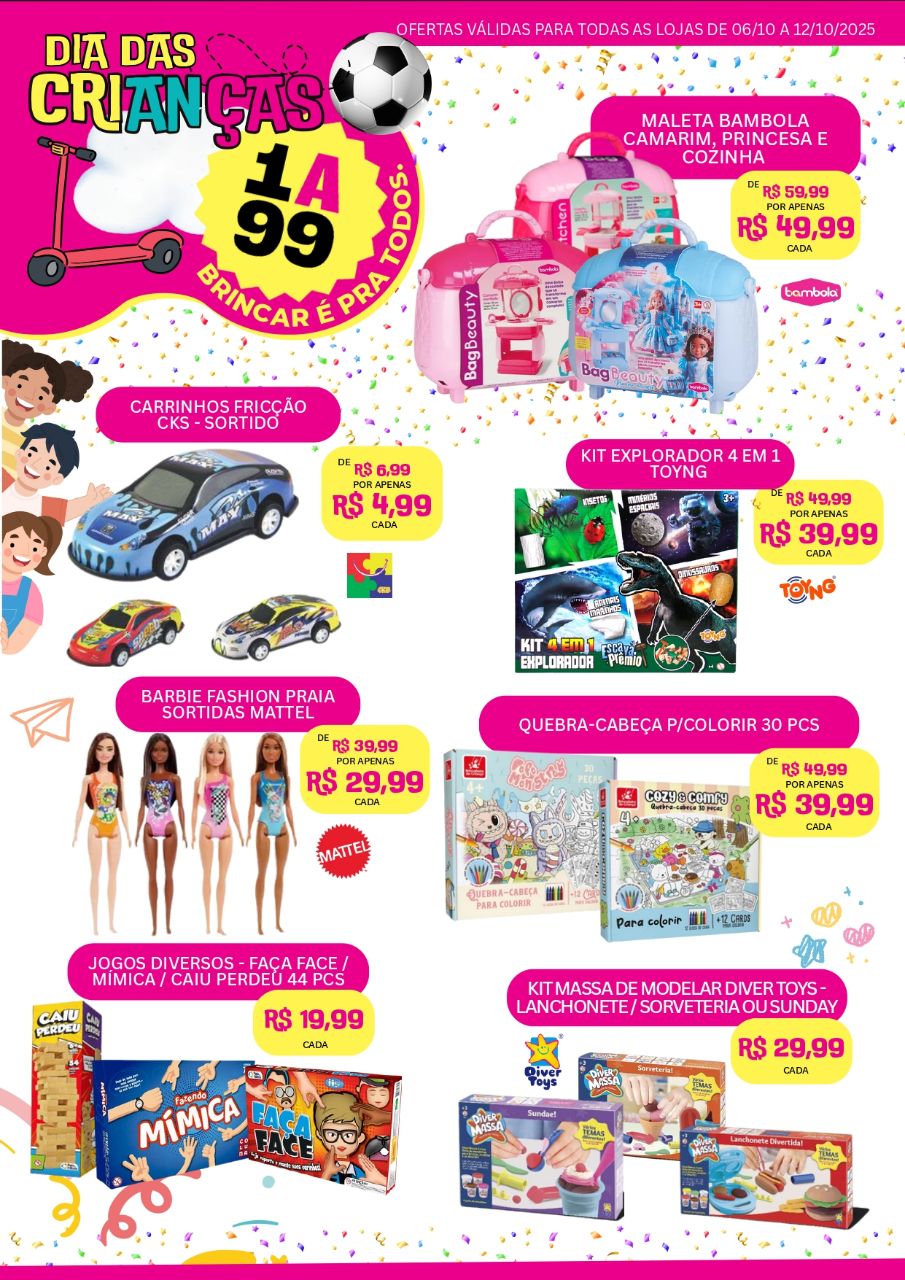 Tem uma super variedade de brinquedos, jogos e muitas surpresas que vão garantir a alegria da criançada!