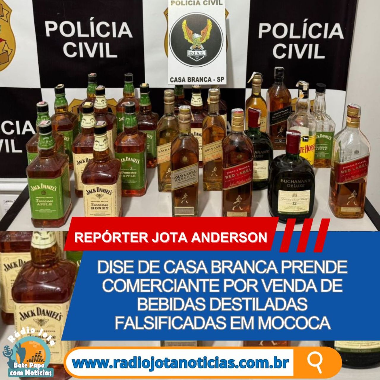 Na tarde desta quinta-feira (23), uma operação de fiscalização realizada por agentes da Delegacia de Investigações Sobre Entorpecentes (DISE) de Casa Branca resultou na prisão em flagrante de um comerciante no bairro Nené Pereira Lima, em Mococa. O homem foi surpreendido enquanto expunha para venda diversas garrafas de bebidas destiladas falsificadas.