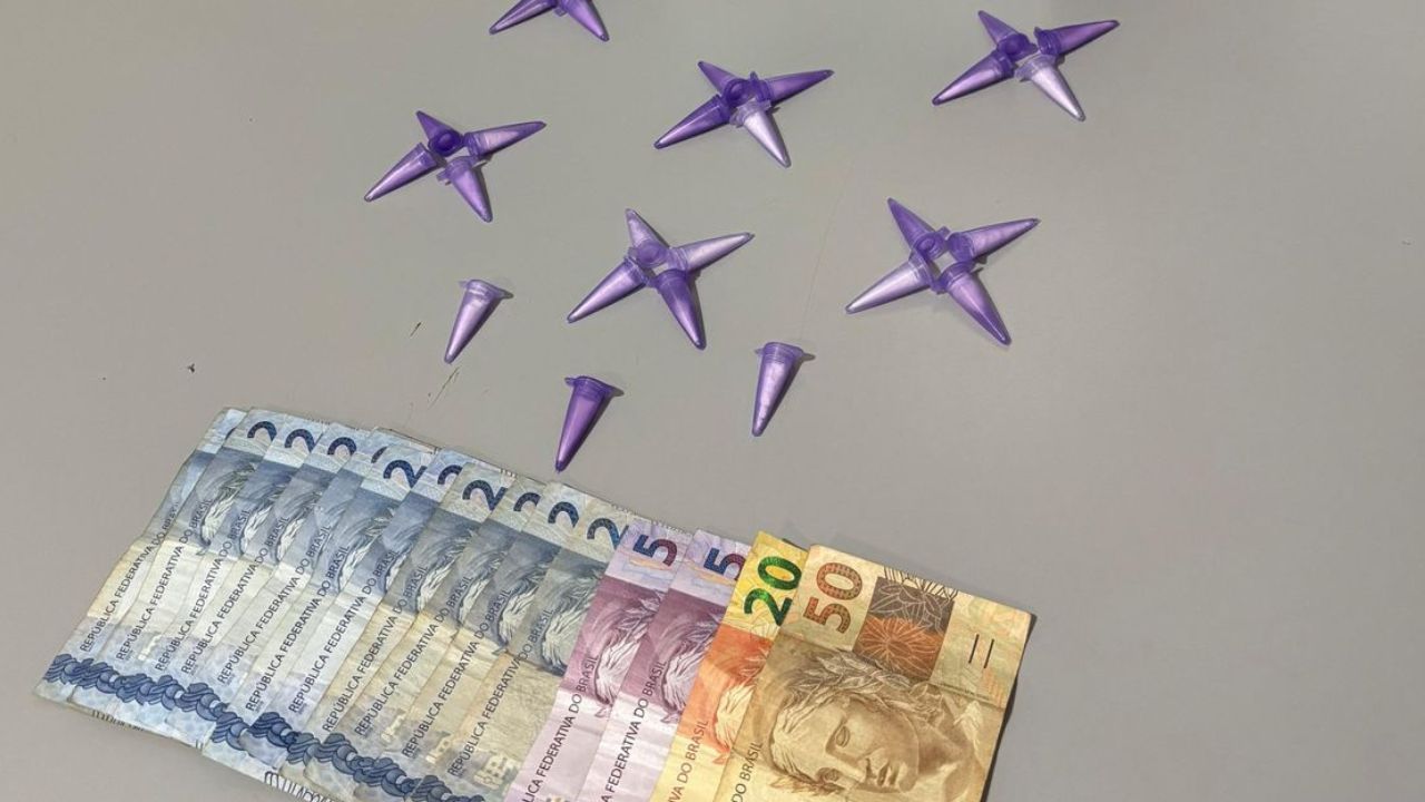 Durante as buscas no imóvel, os policiais encontraram porções de cocaína e uma quantia em dinheiro escondidos dentro de uma caixa de cereal e também em um saco de lixo no quintal da casa.