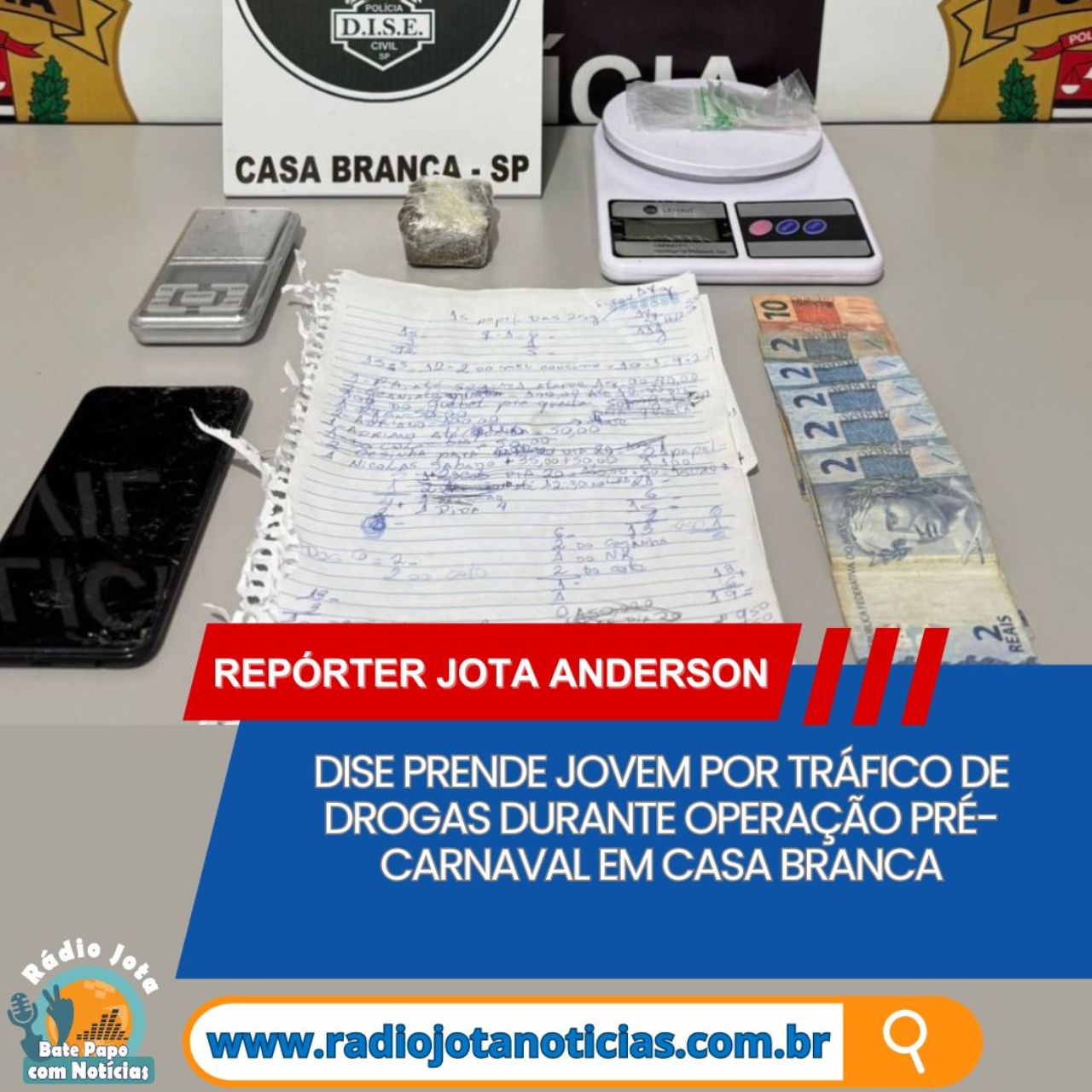 Em continuidade à Operação Pré-Carnaval, agentes da DISE realizaram uma ação no final da tarde desta quinta-feira (12) que resultou na prisão em flagrante de um indivíduo de 18 anos por tráfico de drogas, no bairro Parque São Paulo, em Casa Branca.