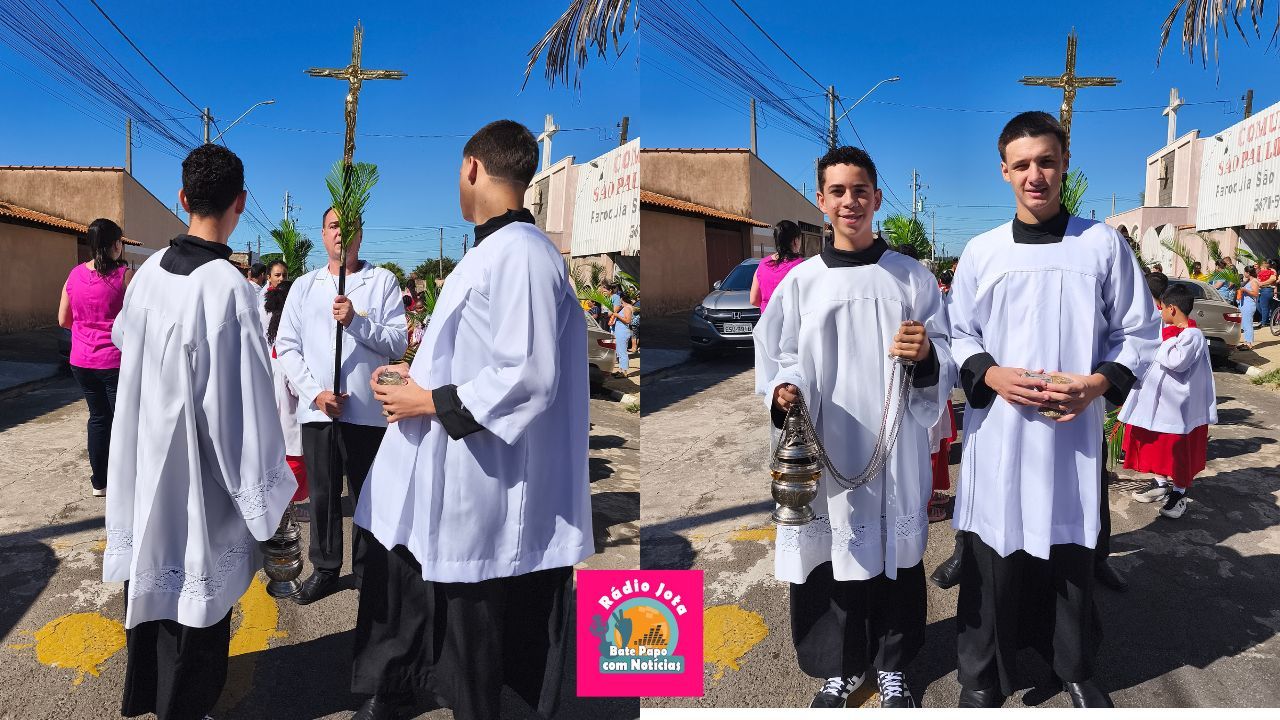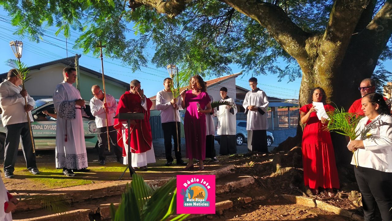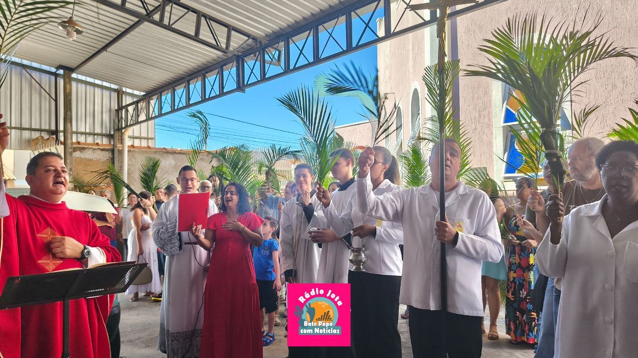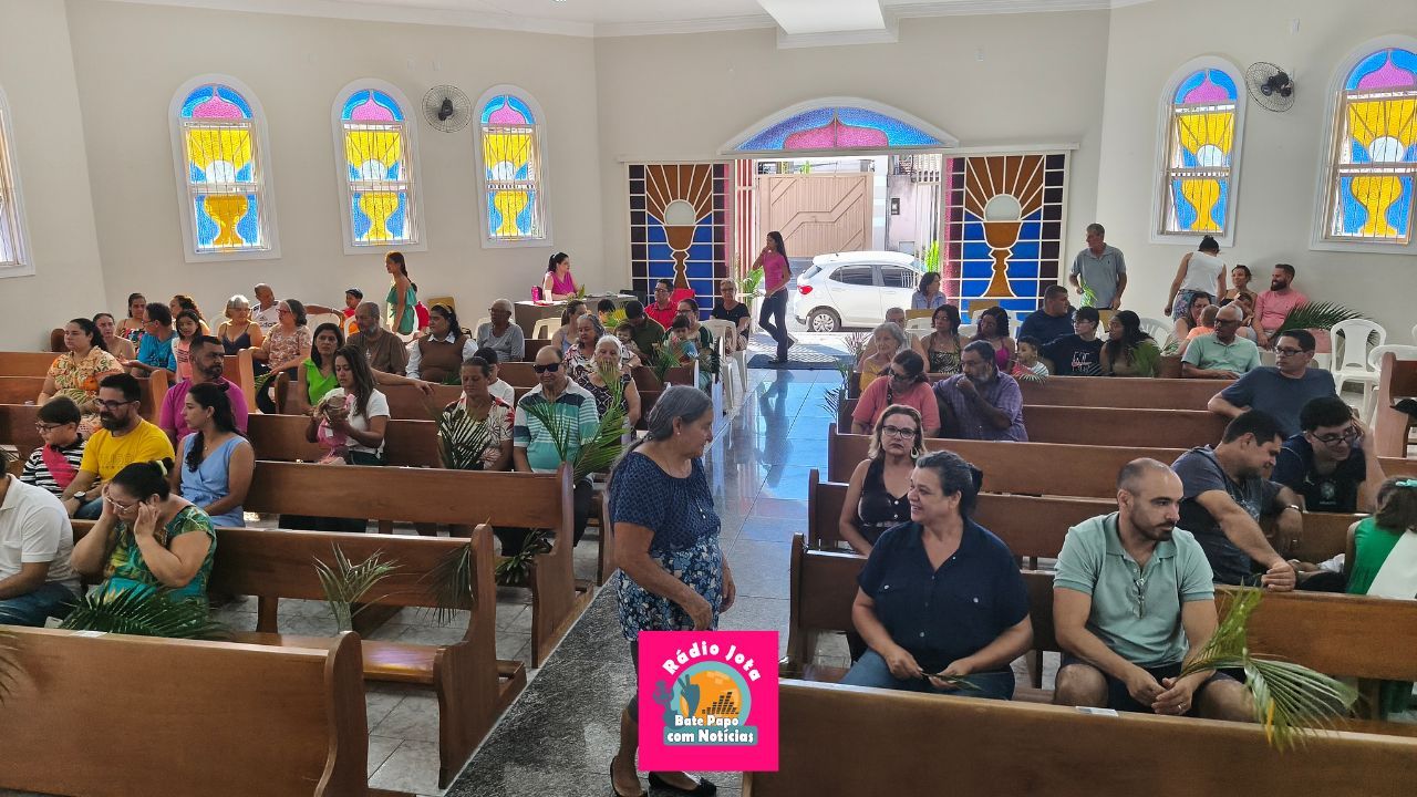 As celebrações reuniram um grande número de fiéis na Matriz São João Batista e também na Igreja São Paulo Apóstolo, onde aconteceu a tradicional procissão com ramos, símbolo de fé e renovação espiritual.