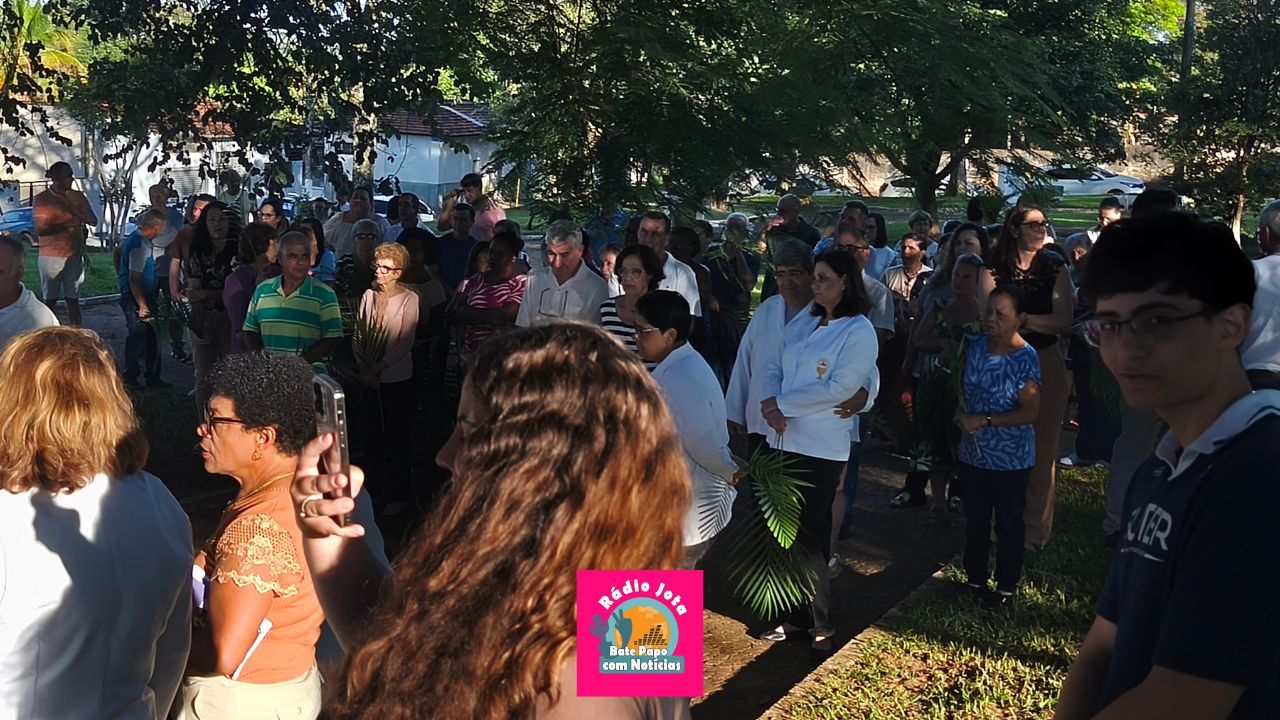 A cerimônia foi conduzida pelo Padre Helinho, que guiou os participantes em um momento de reflexão, oração e união, destacando a importância da data para os cristãos.