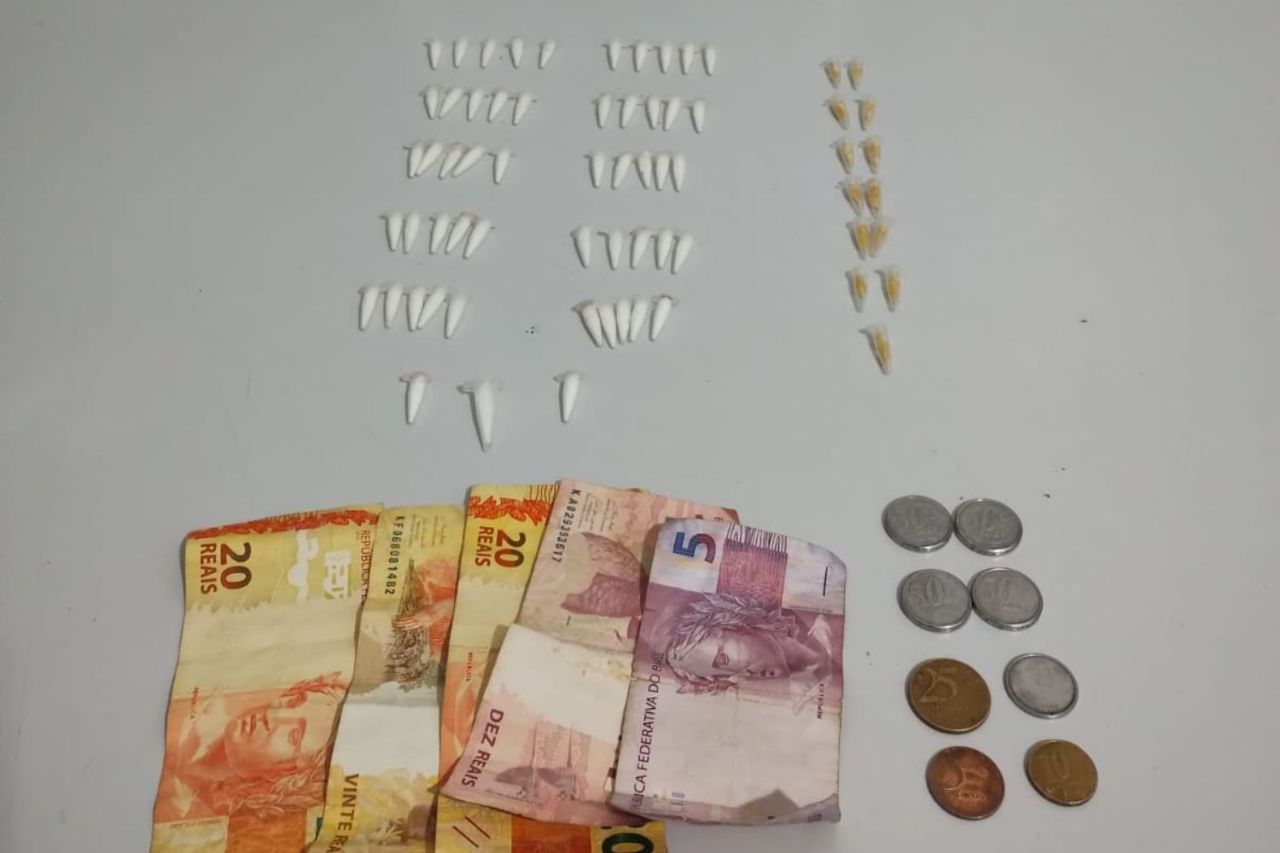 Diante da atitude suspeita, a equipe realizou a abordagem. Com o homem, foram encontrados três eppendorfs contendo cocaína e R$ 77,50 em dinheiro. Já com a mulher, os policiais localizaram 13 eppendorfs de crack, que ela mesma retirou do interior de sua roupa.