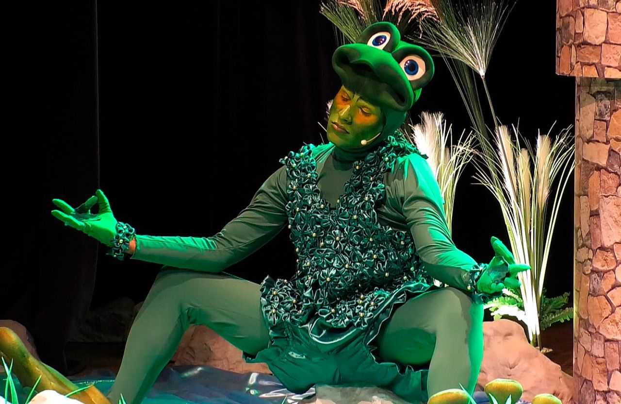 No espetáculo não existe uma princesa que deverá beijar um sapo. Nele, a princesa irá resgatar sua essência e descobrir qual é o seu lugar na estrutura política de seu reino. Já o sapo, surge mais artista que anfíbio, para posteriormente, trilhar uma jornada de redenção. Soma-se a isso, momentos de humor e dança, permeados por conceitos de ecologia e história, além de cantigas de roda e músicas originais.
