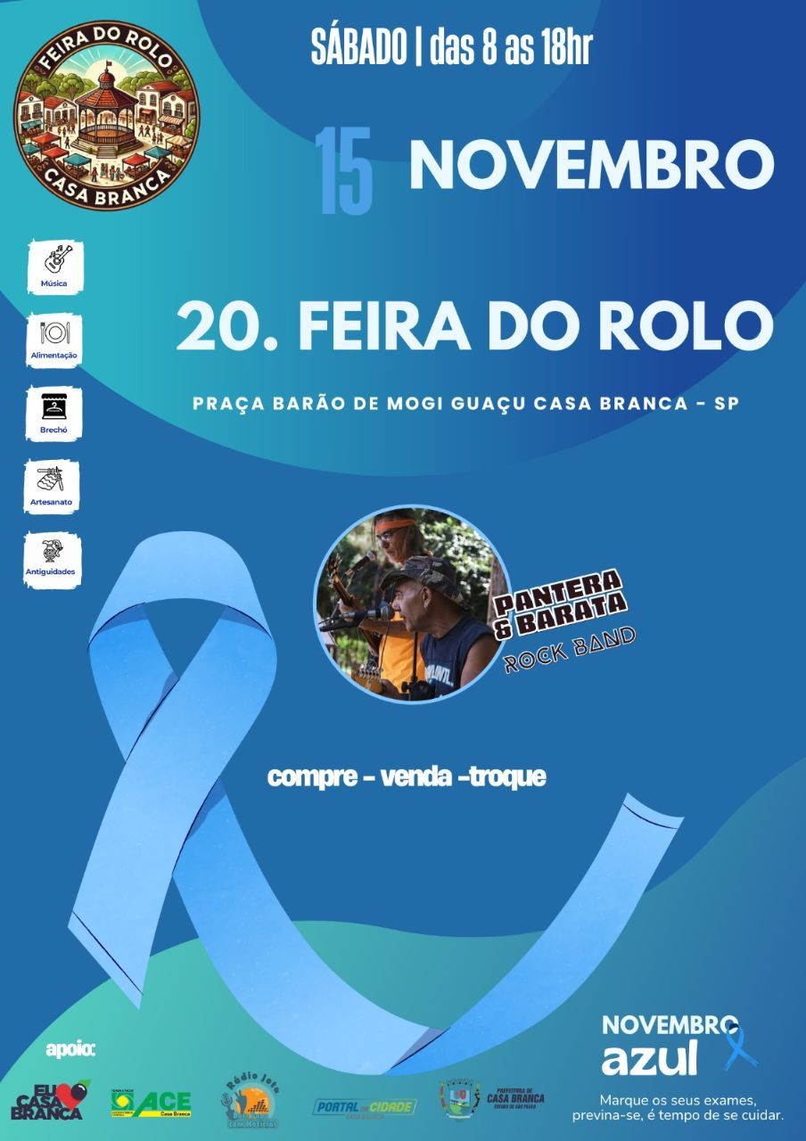 A tradicional Feira do Rolo de Casa Branca chega à sua 20ª edição com uma programação especial e cheia de novidades. O evento será no próximo sábado, dia 15, em uma edição especial em apoio à campanha Novembro Azul, que promove a conscientização sobre a saúde do homem.
