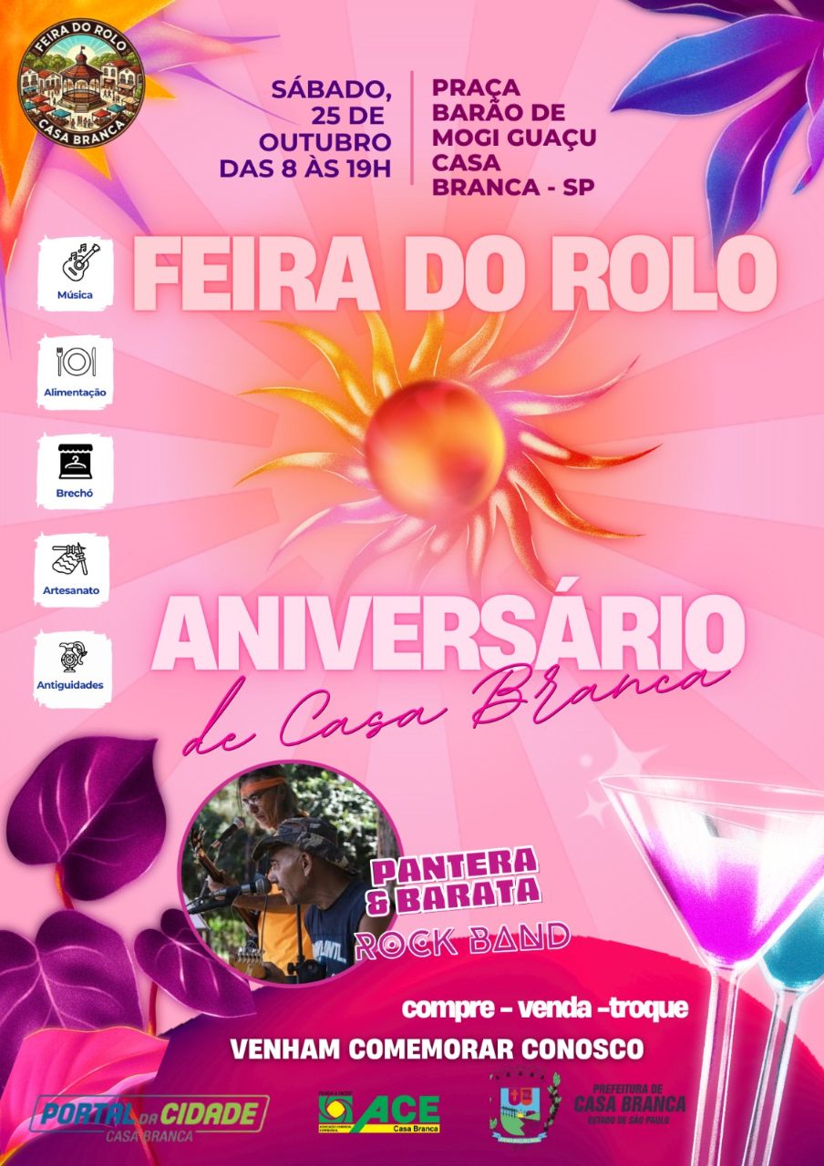 Neste sábado, 25, Casa Branca celebra seus 211 anos de história, e a tradicional Feira do Rolo estará presente mais uma vez para participar dessa grande festa! Em sua 19ª edição, o evento promete movimentar a Praça da Matriz com muita animação, cultura e confraternização.