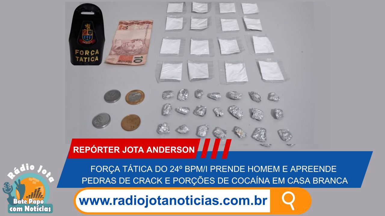 Na noite desta sexta-feira (7), policiais militares da Força Tática do 24º Batalhão de Polícia Militar do Interior (BPM/I) prenderam um homem suspeito de tráfico de drogas na parte central de Casa Branca, após verificarem uma denúncia anônima.