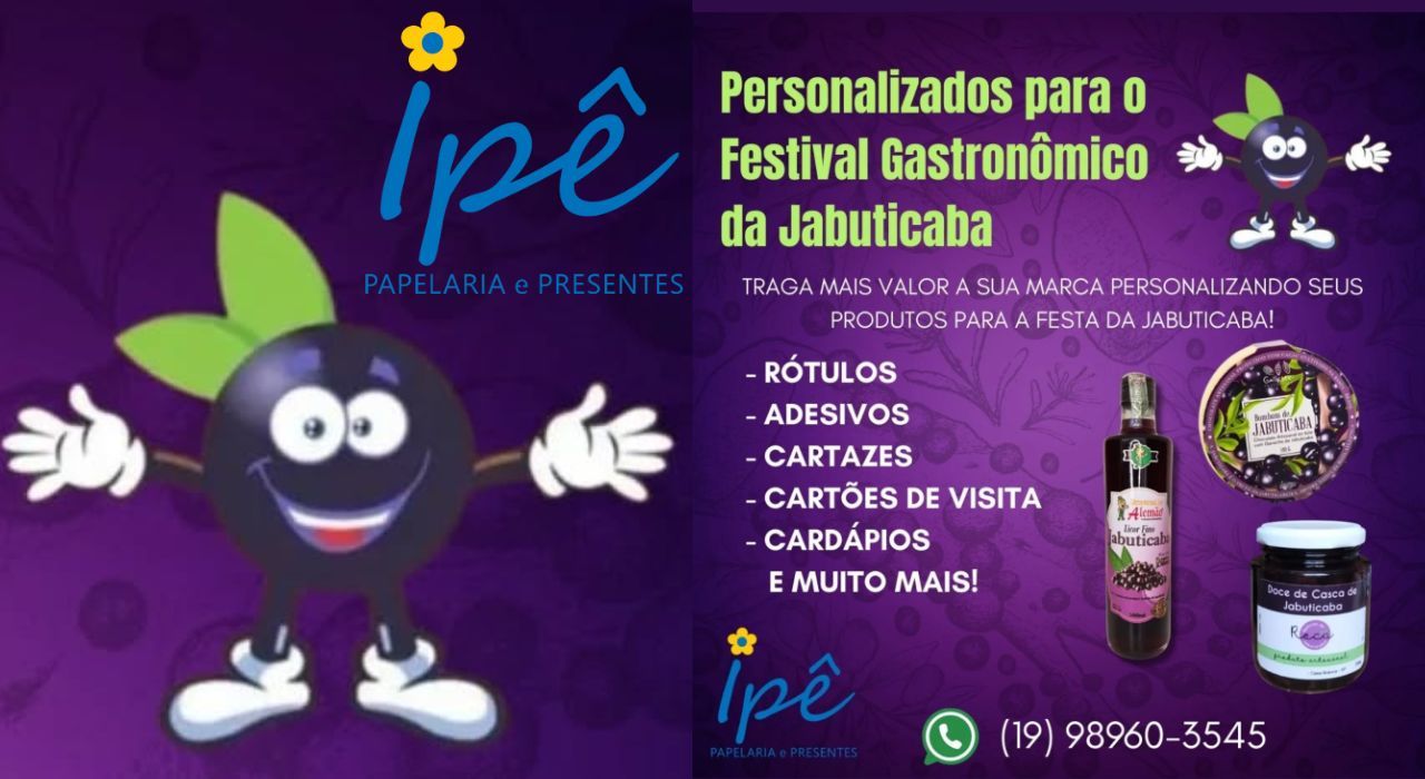 O Festival Gastronômico da Jabuticaba é muito mais do que um encontro de sabores: é uma oportunidade para empreendedores e expositores mostrarem sua marca de forma criativa e marcante. E, para quem quer dar um toque especial aos seus produtos e materiais de divulgação, a Ipê Papelaria e Presentes é a parceira ideal.