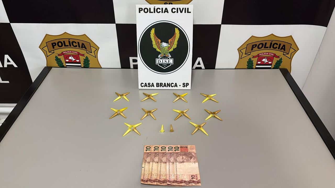 Durante a abordagem, os policiais encontraram com o suspeito 42 porções de cocaína, além de uma quantia em dinheiro proveniente do tráfico. Diante das evidências, ele recebeu voz de prisão em flagrante e foi encaminhado à base da DISE em Casa Branca.