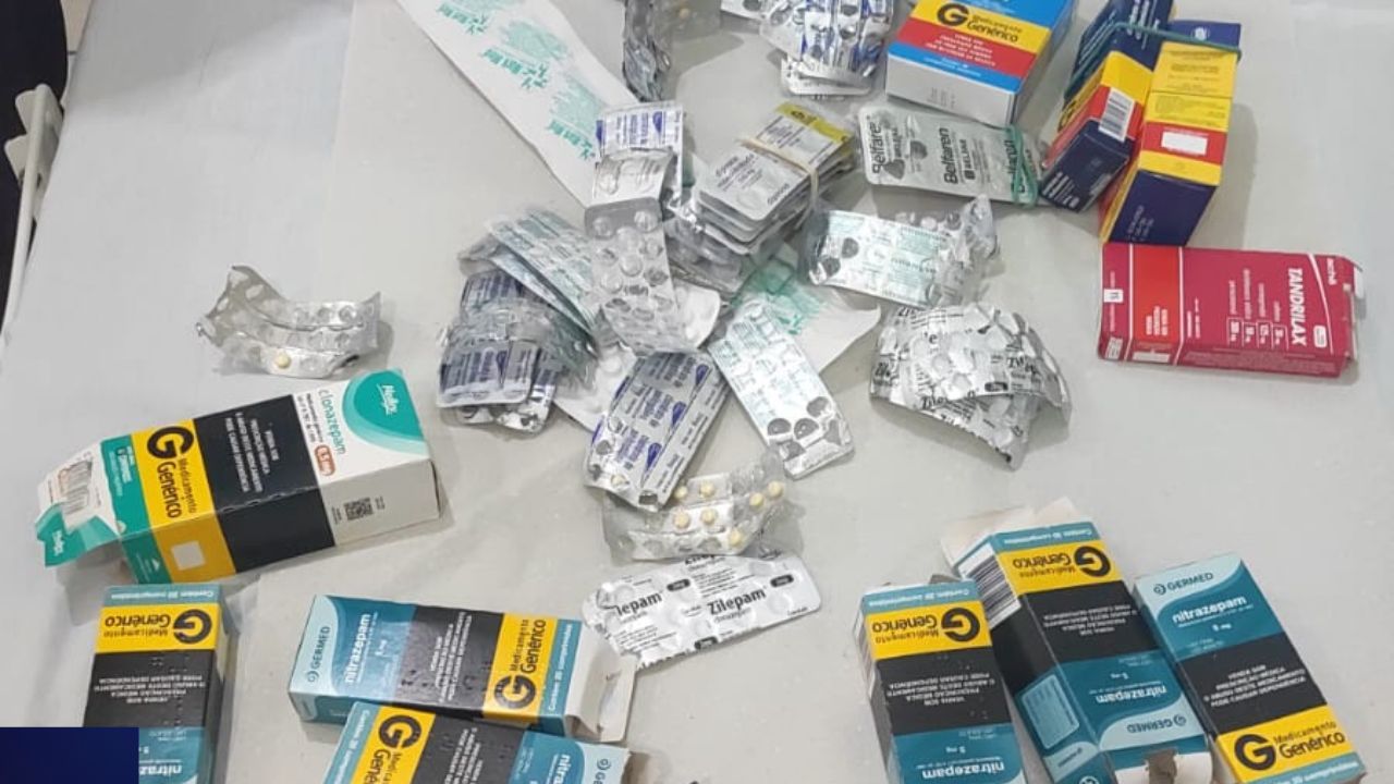 Durante o atendimento, foi localizada uma sacola contendo diversos medicamentos de tarja preta, possivelmente utilizados no momento.