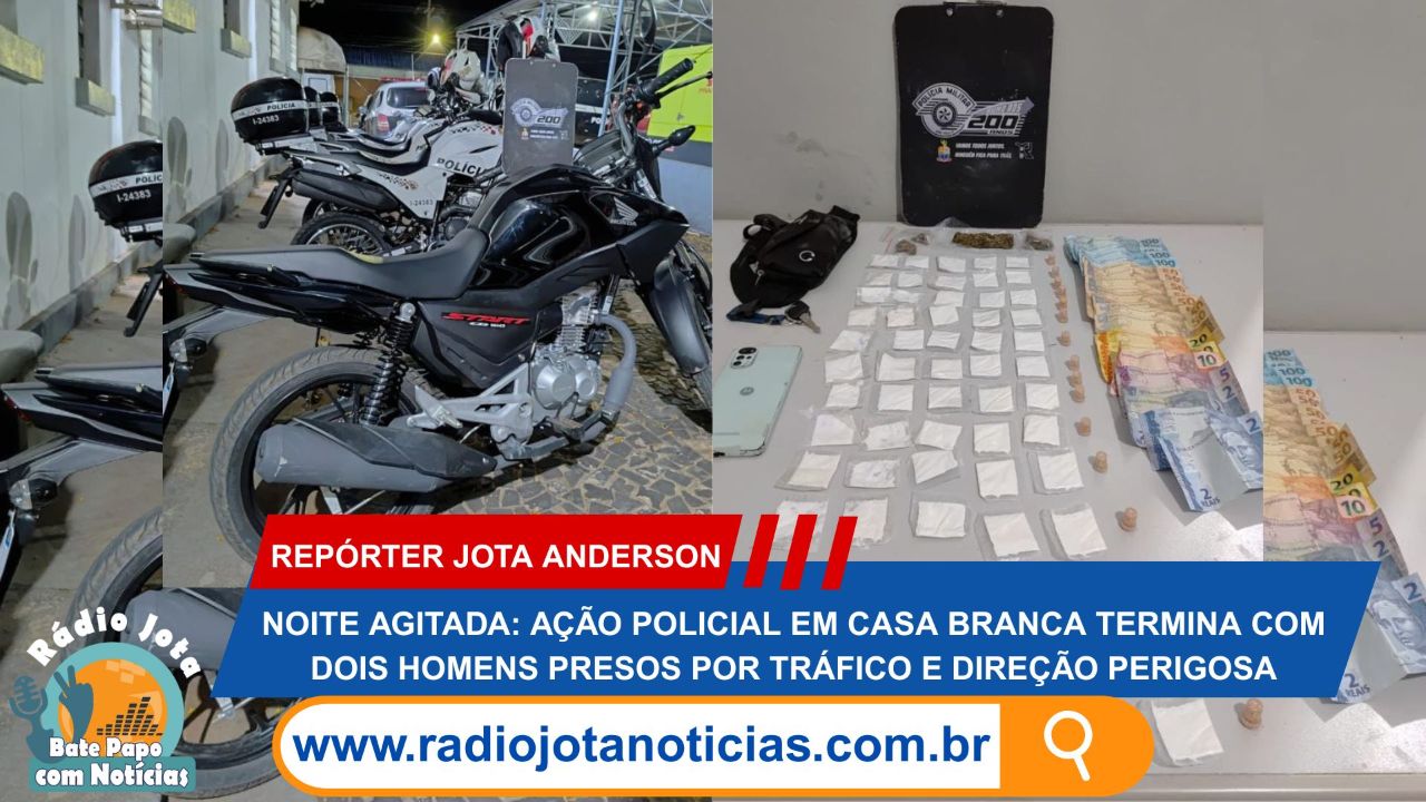 Noite agitada em Casa Branca. Uma intensa operação da Polícia Militar terminou com dois homens presos por tráfico de drogas, direção perigosa, resistência e desobediência, na noite deste sábado (11). A ação fez parte da Operação Cavalo de Aço, realizada pela 2ª Companhia do 24º Batalhão da Polícia Militar do Interior (BPM/I), subordinado à CPI-9.