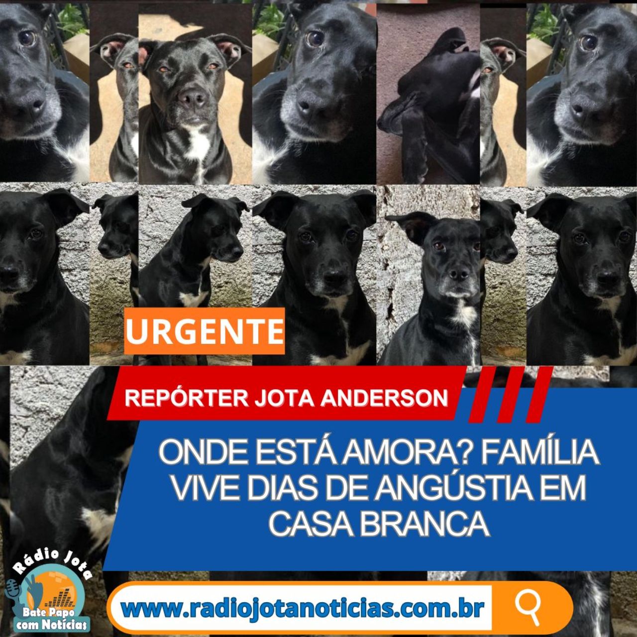 Amora é preta com o peito branco, e desde o desaparecimento a família está desesperada em busca de notícias. A tutora pede que qualquer pessoa que tenha visto o animal entre em contato pelo telefone (19) 99136-7772.