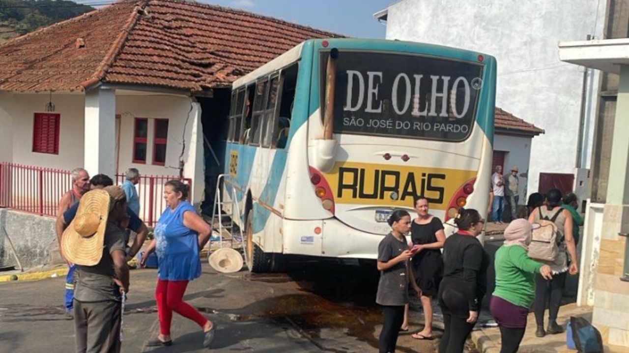 Um acidente mobilizou equipes de resgate na tarde desta quarta-feira (1º) no distrito de São Roque da Fartura, em Águas da Prata (SP). Um ônibus que transportava trabalhadores rurais perdeu o freio durante a descida de uma rua íngreme e acabou invadindo uma residência.