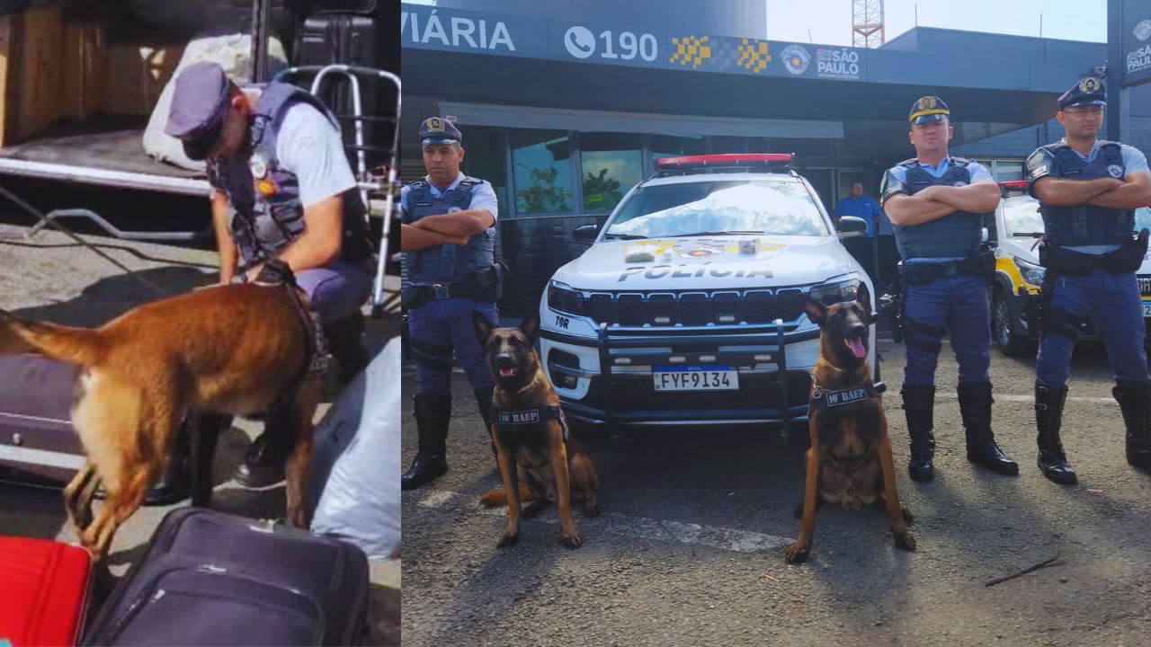 Com o apoio do Canil do 10º BAEP, os cães farejadores identificaram a presença de entorpecentes em uma bolsa localizada no compartimento de carga do ônibus. Na inspeção, foram encontrados pacotes contendo maconha e cocaína.