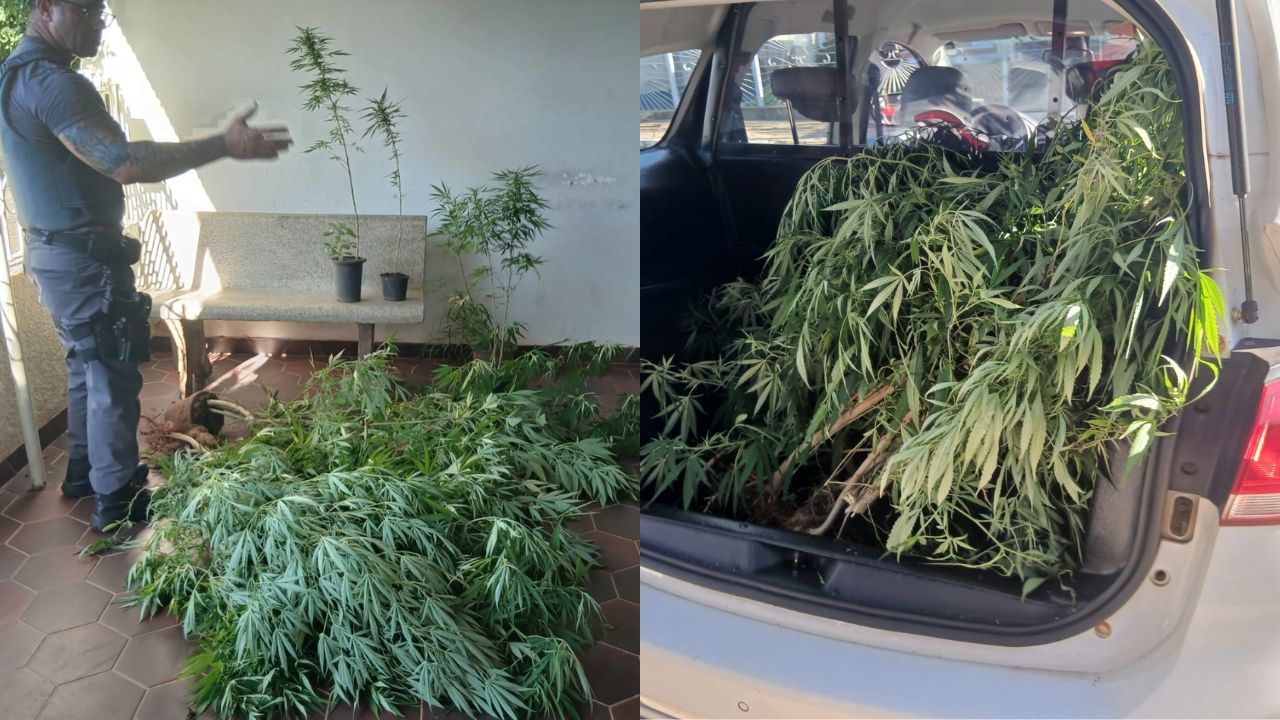 Com base nas informações, a equipe seguiu até outro imóvel relacionado aos suspeitos, onde localizou 30 pés de maconha plantados nos fundos da residência.