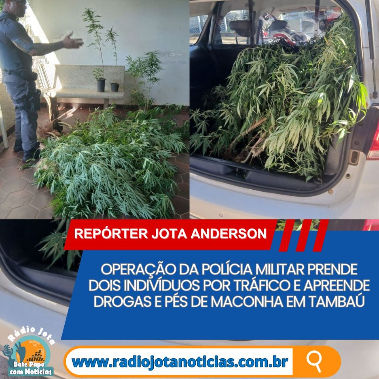 A Polícia Militar realizou uma ação da Operação Impacto contra o tráfico de drogas na tarde de sexta-feira (13), no município de Tambaú, que resultou na prisão de dois homens e na apreensão de entorpecentes, materiais para preparo e cultivo de maconha.