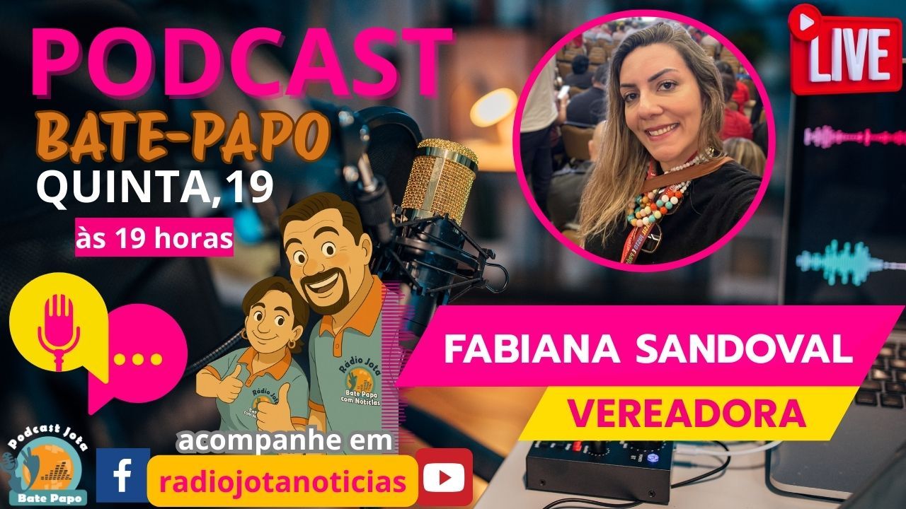Nesta quinta-feira, dia 19, às 19 horas o Podcast Bate Papo com Jota e Sisi recebe como entrevistada a vereadora Fabiana Sandoval, que atualmente está em seu segundo mandato na Câmara Municipal de Casa Branca e ocupa o cargo de Presidente do Legislativo.