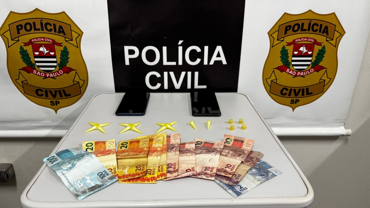 O outro indivíduo foi abordado nas imediações e também portava quantia em dinheiro. Ambos foram conduzidos à Delegacia de Polícia para os procedimentos legais.