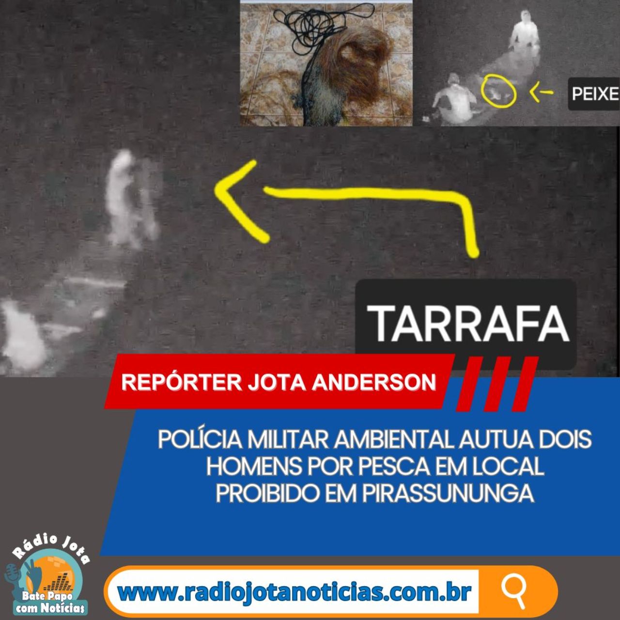 Os indivíduos foram localizados posteriormente no interior de um veículo. Durante a abordagem, nada de ilícito foi encontrado com eles, porém, na busca veicular, os policiais localizaram roupas e uma tarrafa utilizada na prática da pesca.