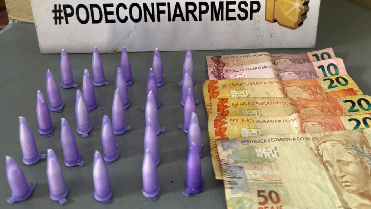 No local indicado, foram encontradas 25 cápsulas de cocaína, que foram apreendidas junto com o dinheiro.