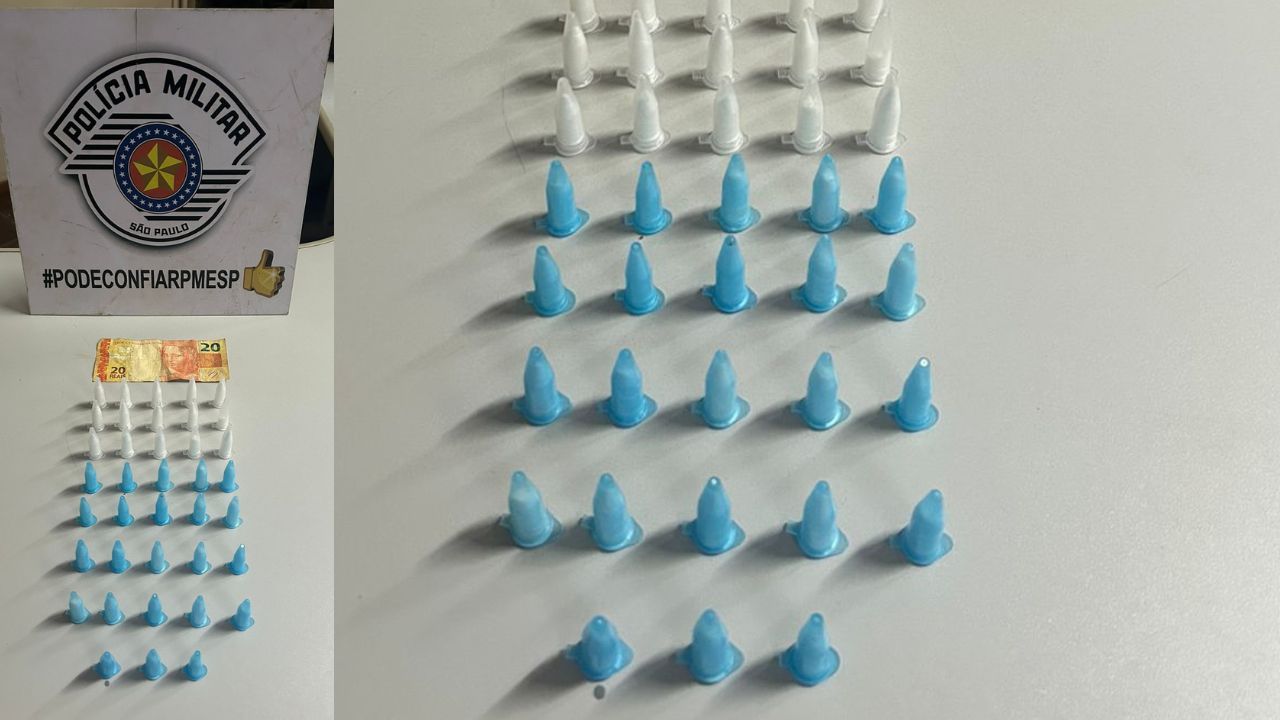 Em continuidade à ocorrência, os policiais seguiram até outro ponto indicado pelas imagens, onde localizaram 35 porções adicionais da mesma substância, totalizando 46 gramas de cocaína.