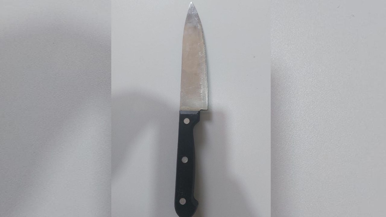 No local, os policiais encontraram um adolescente de 14 anos ao lado de uma faca de cabo preto medindo 27 centímetros, sendo 15 centímetros de lâmina. A mãe e o padrasto do jovem estavam na calçada, aguardando a chegada da equipe policial.