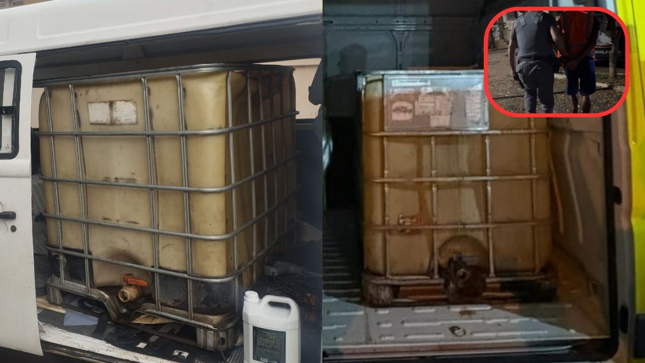 Já no período da noite, um terceiro suspeito foi detido nas mesmas circunstâncias, ao tentar retirar combustível utilizando o mesmo tipo de fraude. Ele estava em um veículo Citroën Jumper, também equipado com recipiente apropriado para o armazenamento de combustível. O suspeito confessou saber da ilegalidade e afirmou que realizava o transporte de forma irregular em veículo próprio.