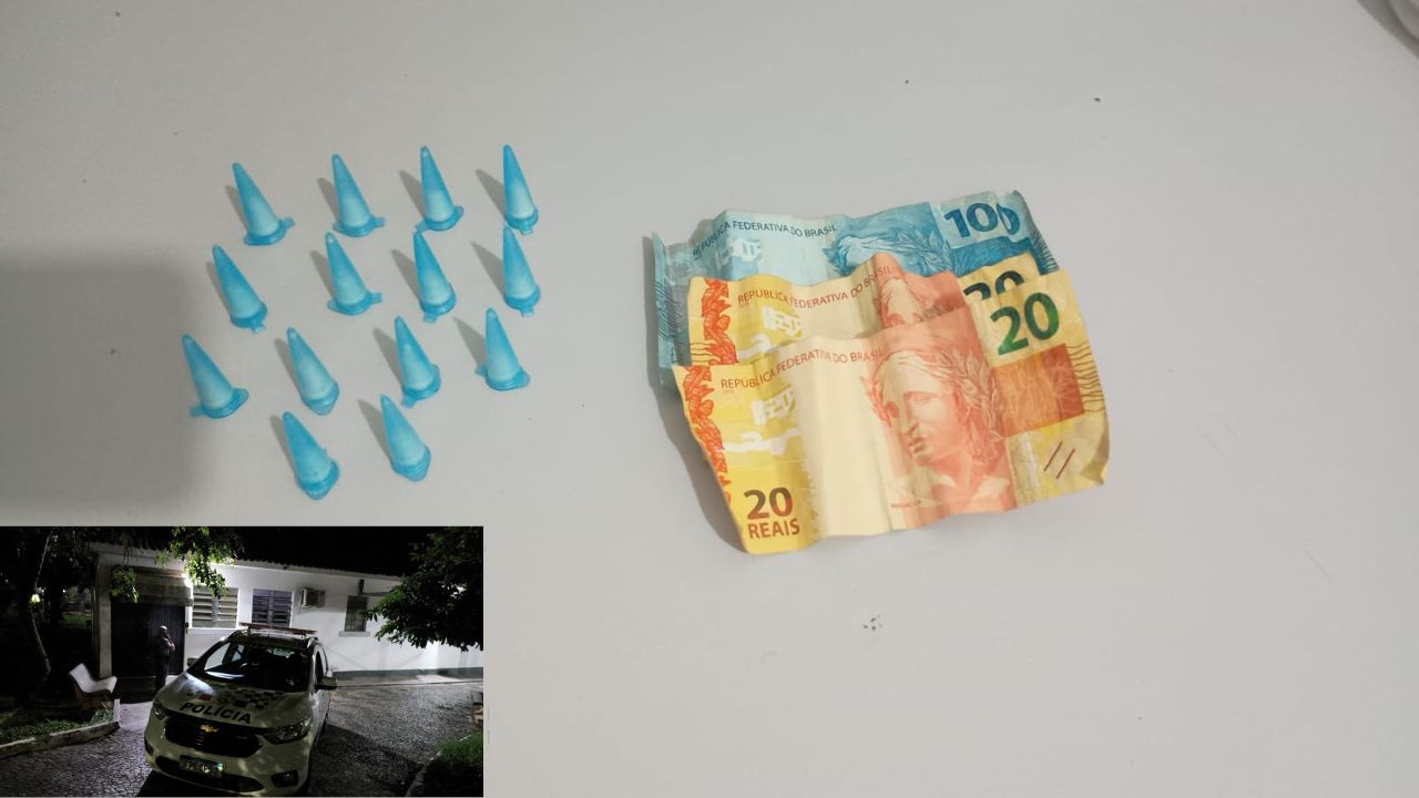 Ação ocorreu durante patrulhamento motivado por denúncias e resultou na apreensão de porções de cocaína e dinheiro proveniente da venda de drogas
