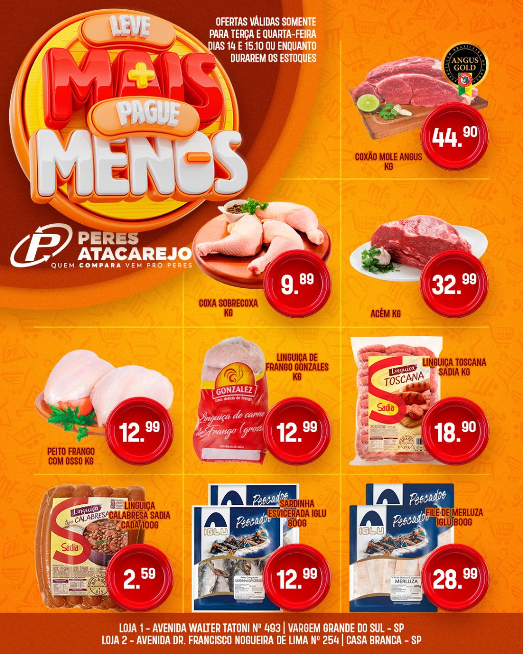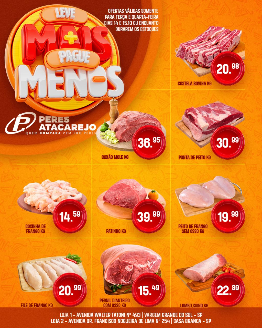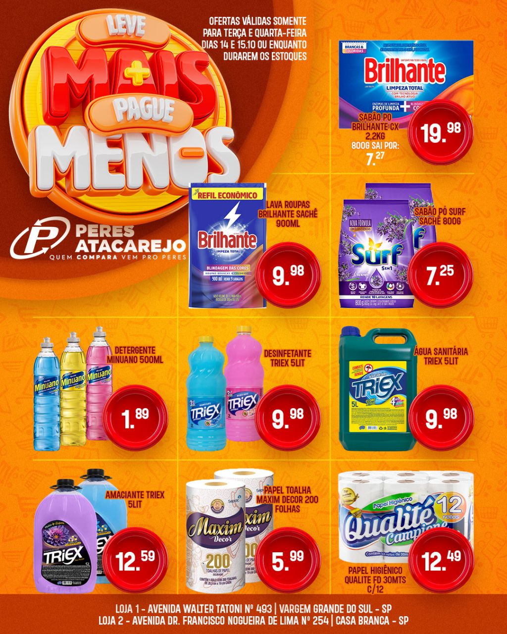 O Peres Atacarejo preparou dois dias especiais pra você economizar de verdade! Nesta terça, 14 de outubro, e quarta, 15 de outubro de 2025, tem ofertas exclusivas em produtos selecionados que cabem no seu bolso e enchem o carrinho de economia!