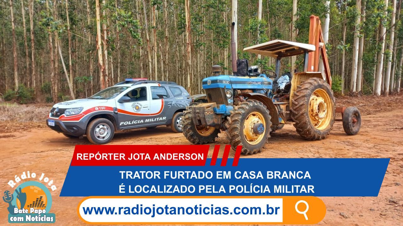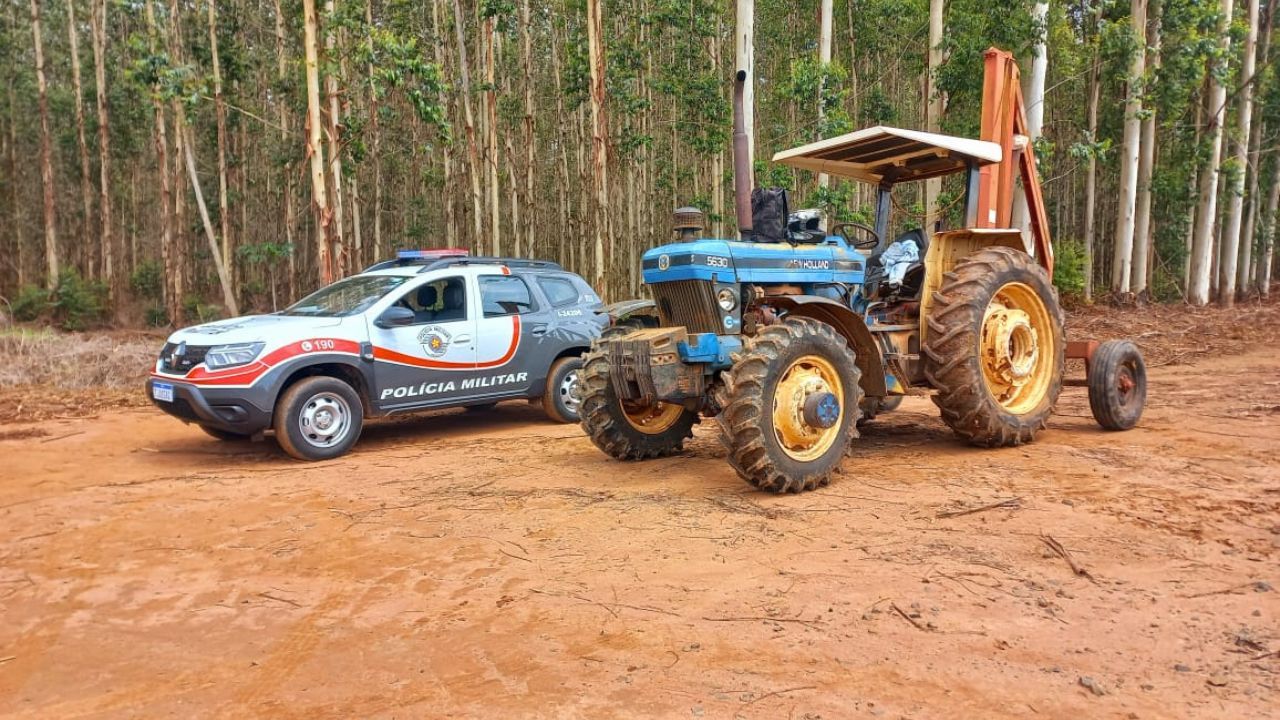 Na manhã da última sexta-feira (31), a Polícia Militar localizou um trator New Holland, modelo Ford 5630, de cor azul, que havia sido furtado e estava escondido em uma plantação de eucaliptos no Horto Florestal Areia Branca, distrito de Lagoa Branca, em Casa Branca (SP).