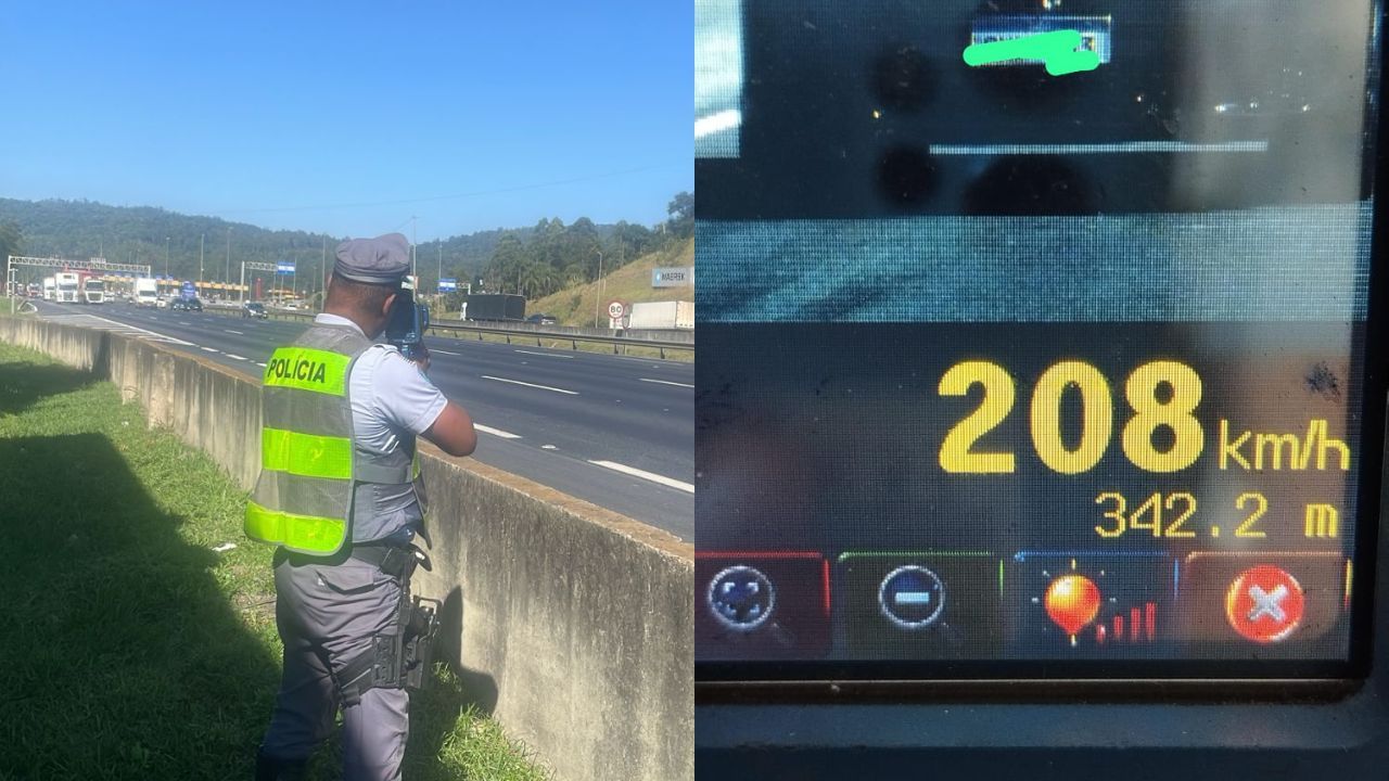 Durante a fiscalização, uma ocorrência chamou a atenção das equipes: um veículo foi flagrado a 208 km/h na Rodovia D. Pedro I (SP-065), km 76,500, sentido sul, em Atibaia, onde o limite de velocidade para veículos leves é de 110 km/h.